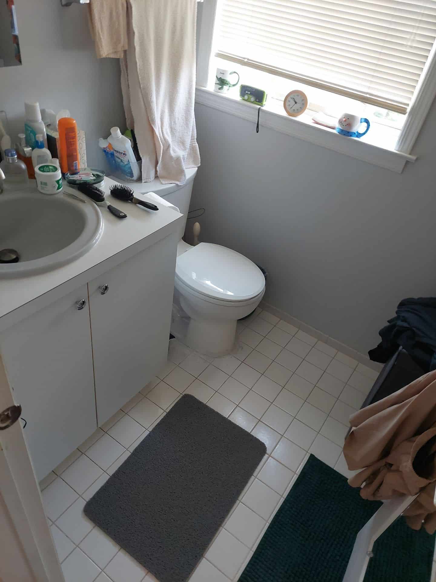 - Removal and Drying: All damaged materials, including tiles around the toilet and any water-affected surfaces, were carefully removed. We then used industrial-grade dehumidifiers and fans to thoroughly dry the bathroom, ensuring no moisture remained that could cause mold or further damage.